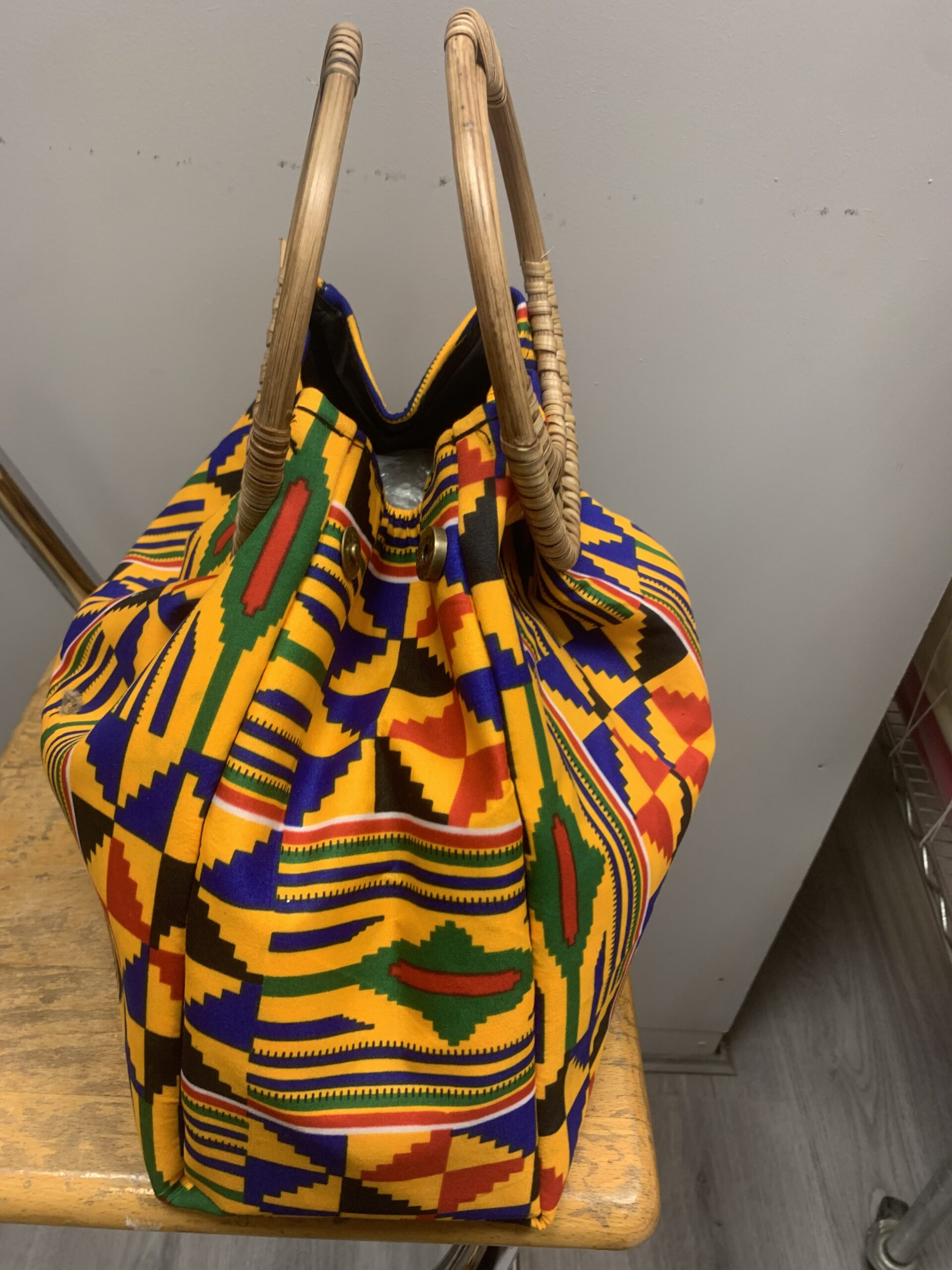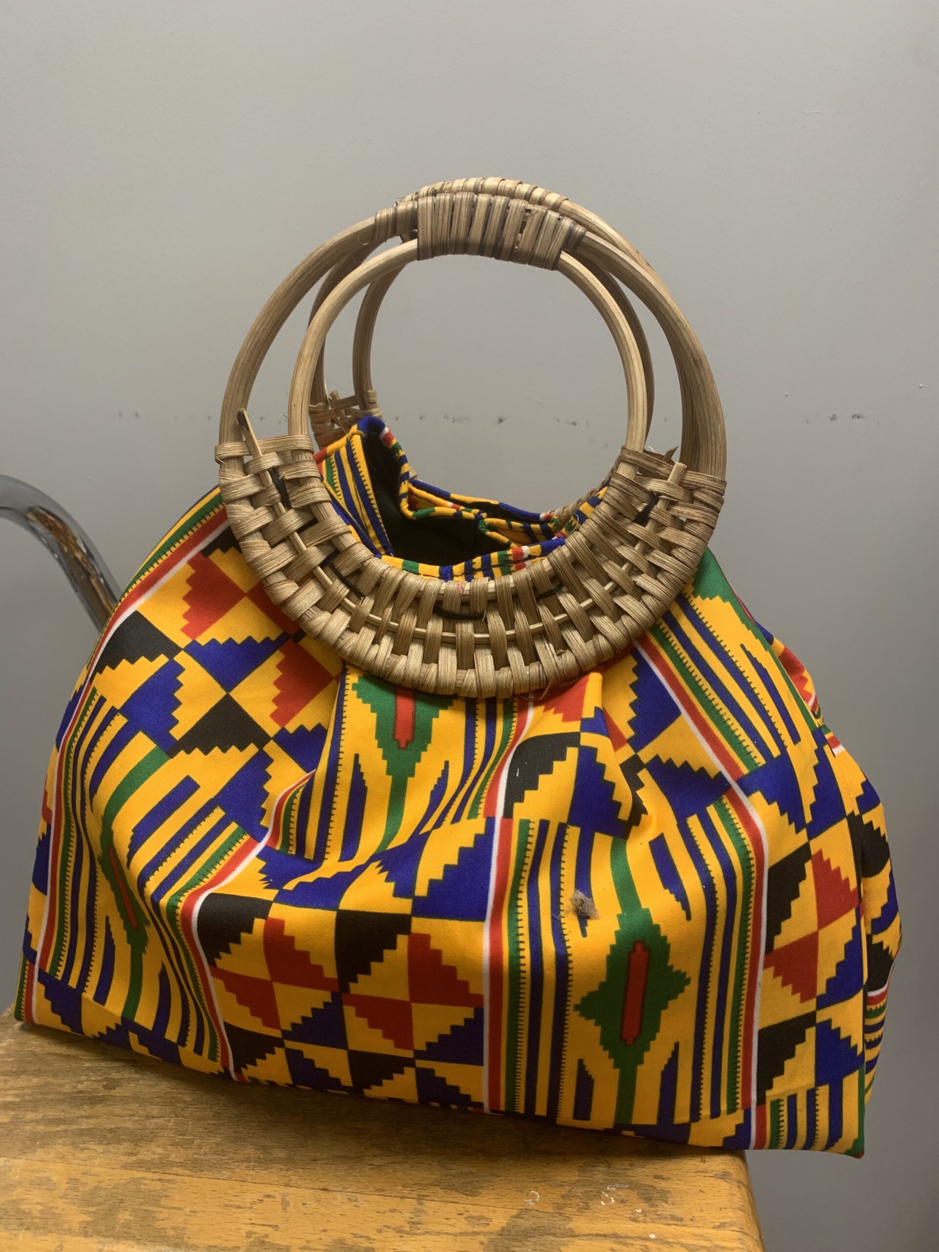 Woven Handle Kente Handbag